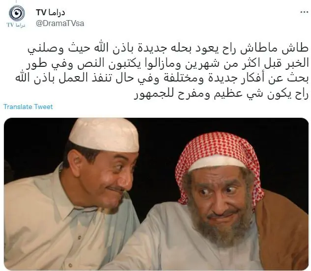 وأكد الناقد المطيري في تغريدة نشرها عبر حسابه في موقع التواصل "تويتر"، أن المسلسل سيعود بمشاركة نجميه عبدالله السدحان وناصر القصبي.