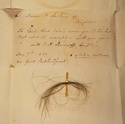 وبينما كان رفاق الراحل يقومون بفرز متعلقاته الشخصية، وجدوا وصية مع خصلة شعر طلب فيها بيتهوفن من اخوته كشف سر متعلق بصحته للعامة.