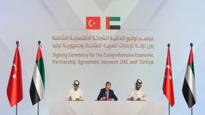 وقعت دولة الإمارات وكمبوديا، اليوم الخميس، اتفاقية شراكة اقتصادية شاملة، تهدف إلى مضاعفة التجارة البينية غير النفطية بين البلدين.