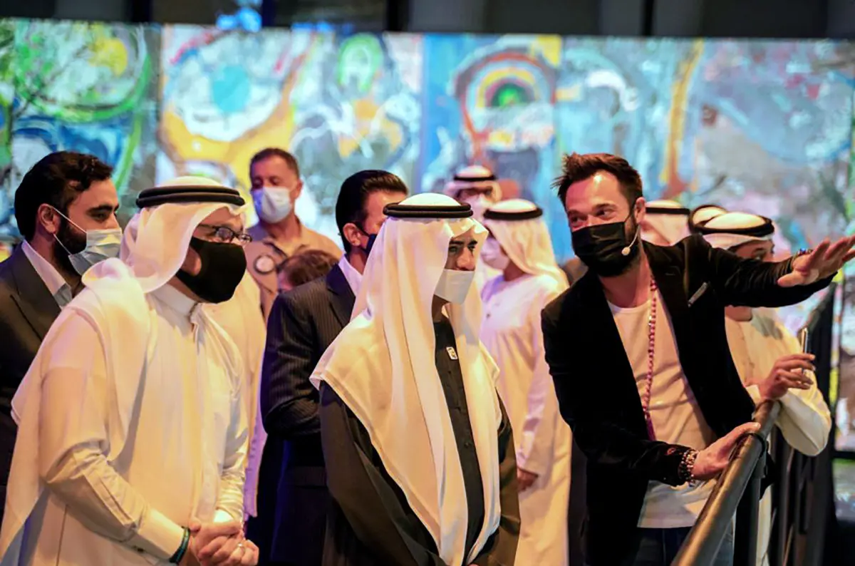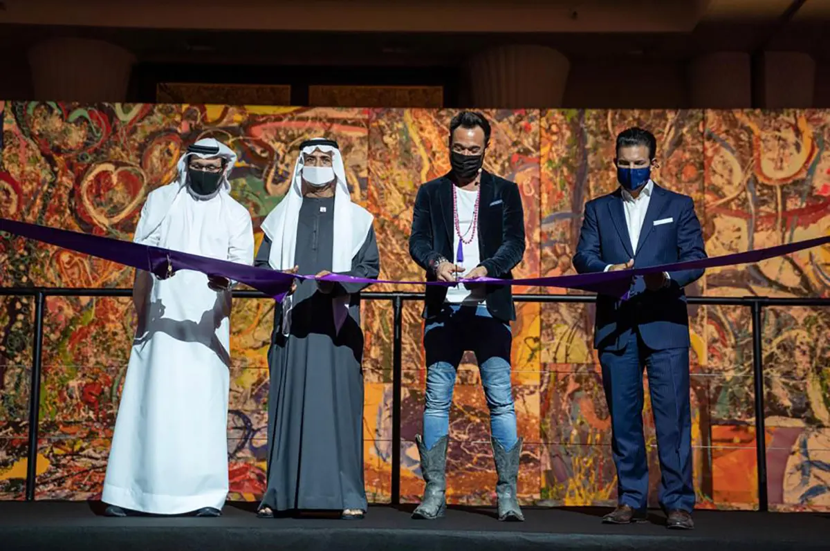 وأُزيح الستار عن اللوحة، التي جاءت ابتكارًا من أحد رموز الأعمال الإنسانية الفنان البريطاني المقيم في دبي ساشا جفري، خلال حفل رسمي تضمن مجموعة من العروض المذهلة بأداء أحد أعظم مواهب الغناء الأوبرالي أنجليكا دي لا ريفا، أقيم في منتجع أتلانتس النخلة في دبي بحضور الرئيس التنفيذي لدبي الدكتور طارق محمد القرق.