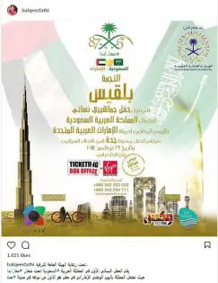 وقالت بلقيس عبر صفحتها على موقع "إنستغرام" إن الحفل سيقام تحت رعاية الهيئة العامة للترفيه السعودية، وسيكون الأول من نوعه في جدة، مطالبة جمهورها بالإشارة إلى فتيات جدة في منشورها حتى يحضروا الحفل.