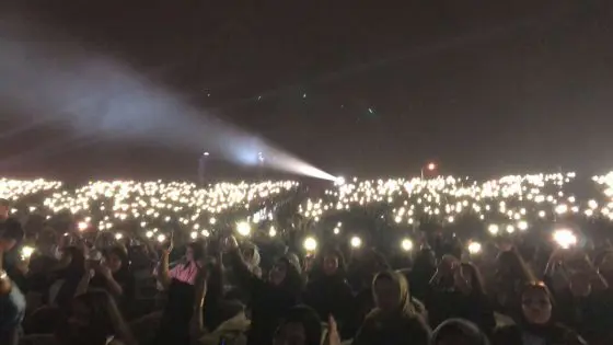 وأظهرت صور ومقاطع فيديو تم تصويرها من داخل الحفل الذي أقيم على مسرح بمدينة الملك عبدالله الاقتصادية في جدة، النجم الشاب واسع الشهرة يغني عددًا من أشهر أغنياته بينما تتفاعل الشابات معه رقصًا وصراخًا وترديدًا لأغانيه.