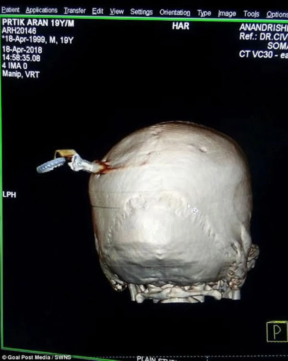 وأجرى الجراحون المصدومون جراحة دامت 3 ساعات ونصف، بعد نقل الشاب البالغ من العمر 19 عامًا من ولاية "ماهاراشترا" الهندية إلى المستشفى، لإزالة مفتاح اخترق جمجمته بعمق بوصتين.