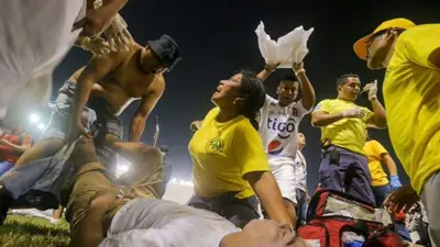 وظل الشاب ممداً على الأرض ويتلوى بعد سقوطه، بينما هرع حراس آخرون إليه للتأكد من حالته التي لم تتضح بعد.