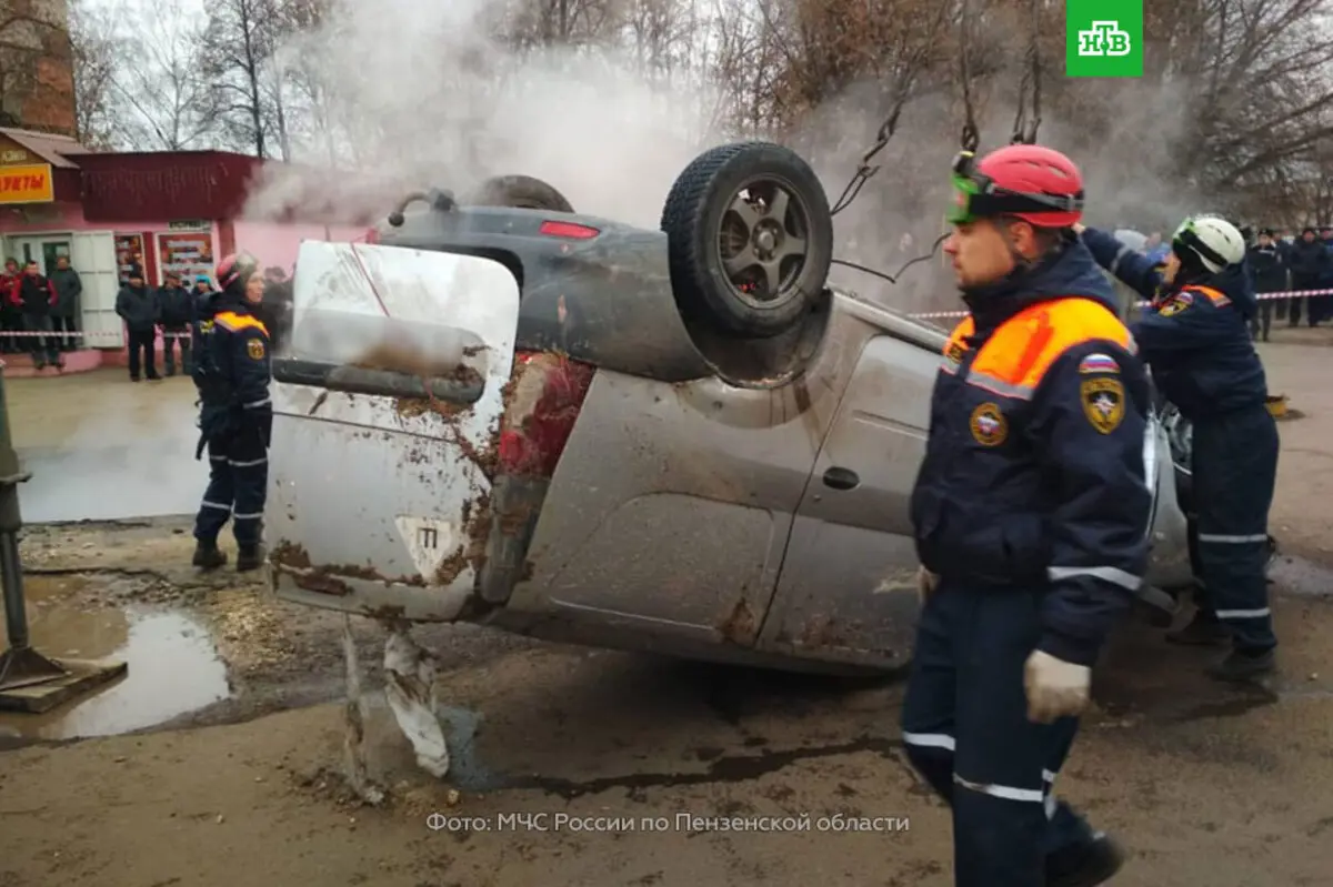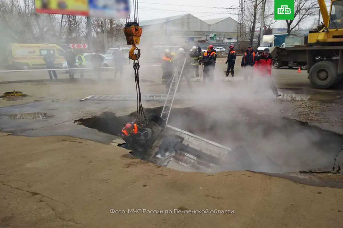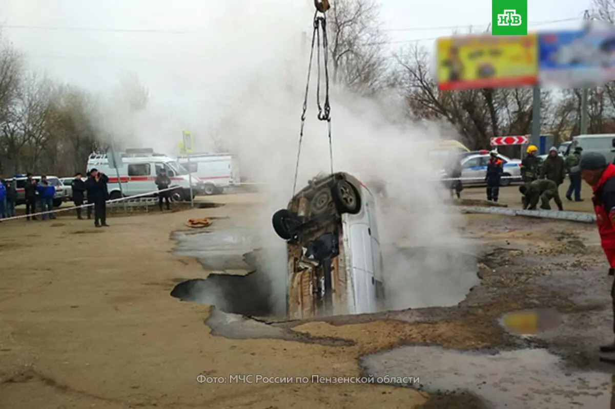 ابتلعت الأرض سيارة كانت متوقفة في أحد شوارع مدينة بينزا الروسية، ليجد الركاب أنفسهم في حفرة تحتوي على ماء مغلي.