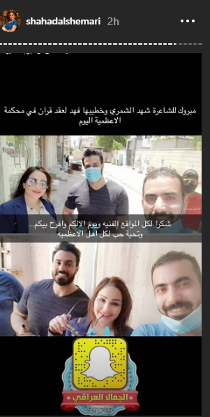 أعلنت الإعلامية والشاعرة العراقية شهد الشمري عقد قرانها على شاب عراقي يدعى فهد زيد.