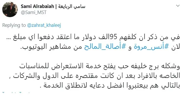 ونفى أنس مروة، دفعه وزوجته أي مبلغ، نظير قيام برج خليفة بالإعلان عن جنس مولودهما، مؤكدًا أن "البادرة كانت هدية من برج خليفة".
