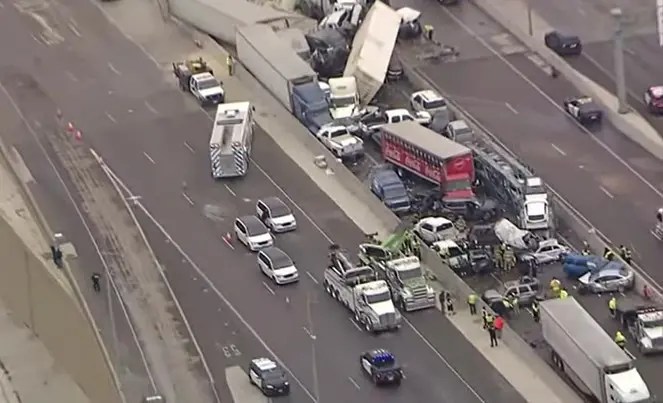 وأسفر حادث سير ضخم بسبب الجليد على طريق سريع قرب دالاس عن مقتل ستة أشخاص على الأقل، وإصابة العشرات الخميس الماضي.