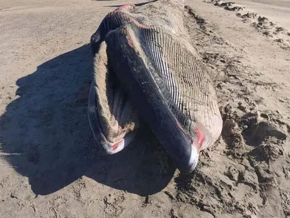 عثر أهالي مدينة بلطيم بكفر الشيخ شمال مصر؛ اليوم الجمعة، على كائن بحري ضخم تبين أنه أنثى الحوت الأحدب.