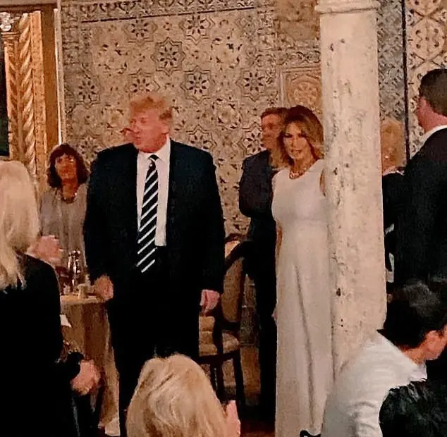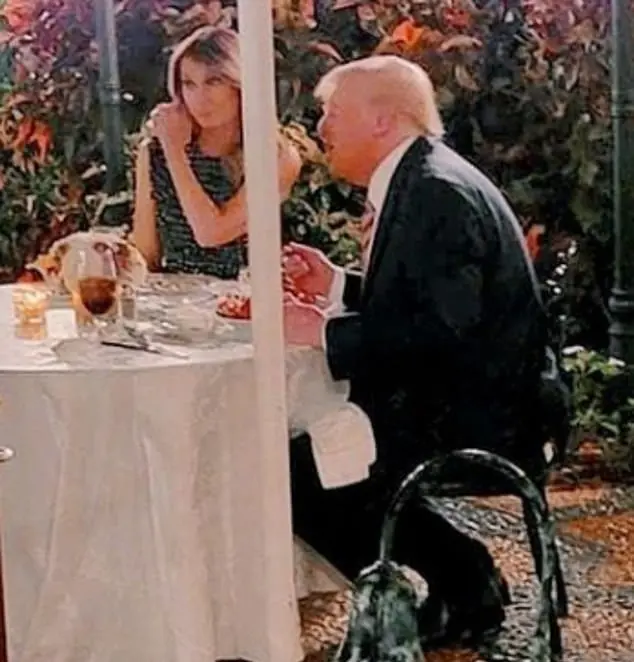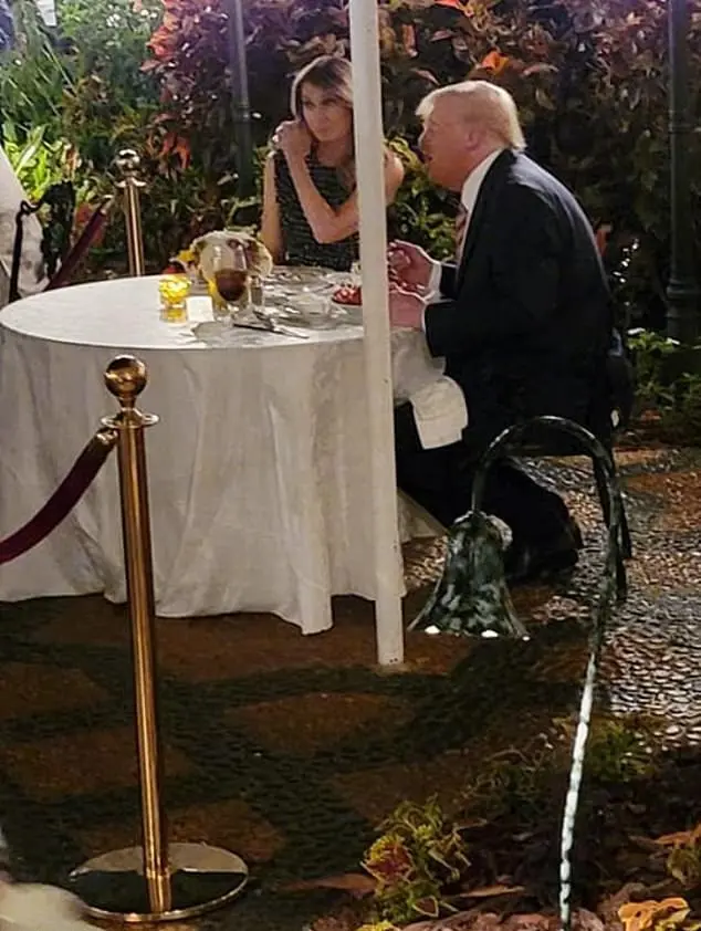 جمع عشاء "رومانسي" بين الرئيس الأمريكي السابق دونالد ترامب وزوجته ميلانيا، حيثُ أظهرت صور للثنائي وهما جالسين على مائدة مستديرة خاصة في الهواء الطلق بأحد مطاعم منتجع "مار أيه لاغو" في فلوريدا الأمريكية.