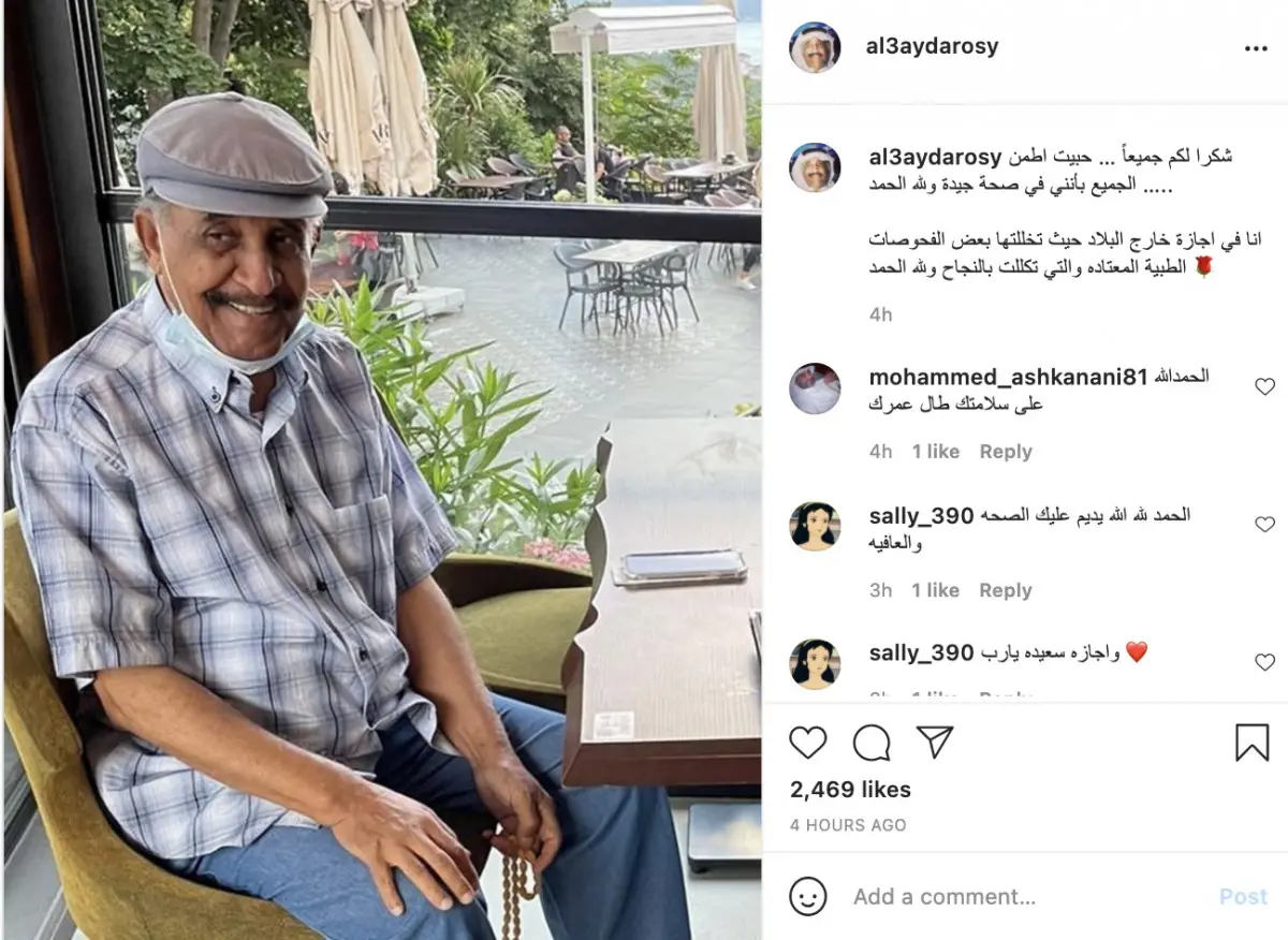 يأتي هذا بعد أن نشرت الإعلامية الكويتية مي العيدان، صورة لمواطنها محمد جابر، عبر حسابها في "إنستغرام"، ظهر فيها وهو يرقد على سرير في مستشفى وبيده بعض اللاصقات الطبية، ما أقلق متابعيه.