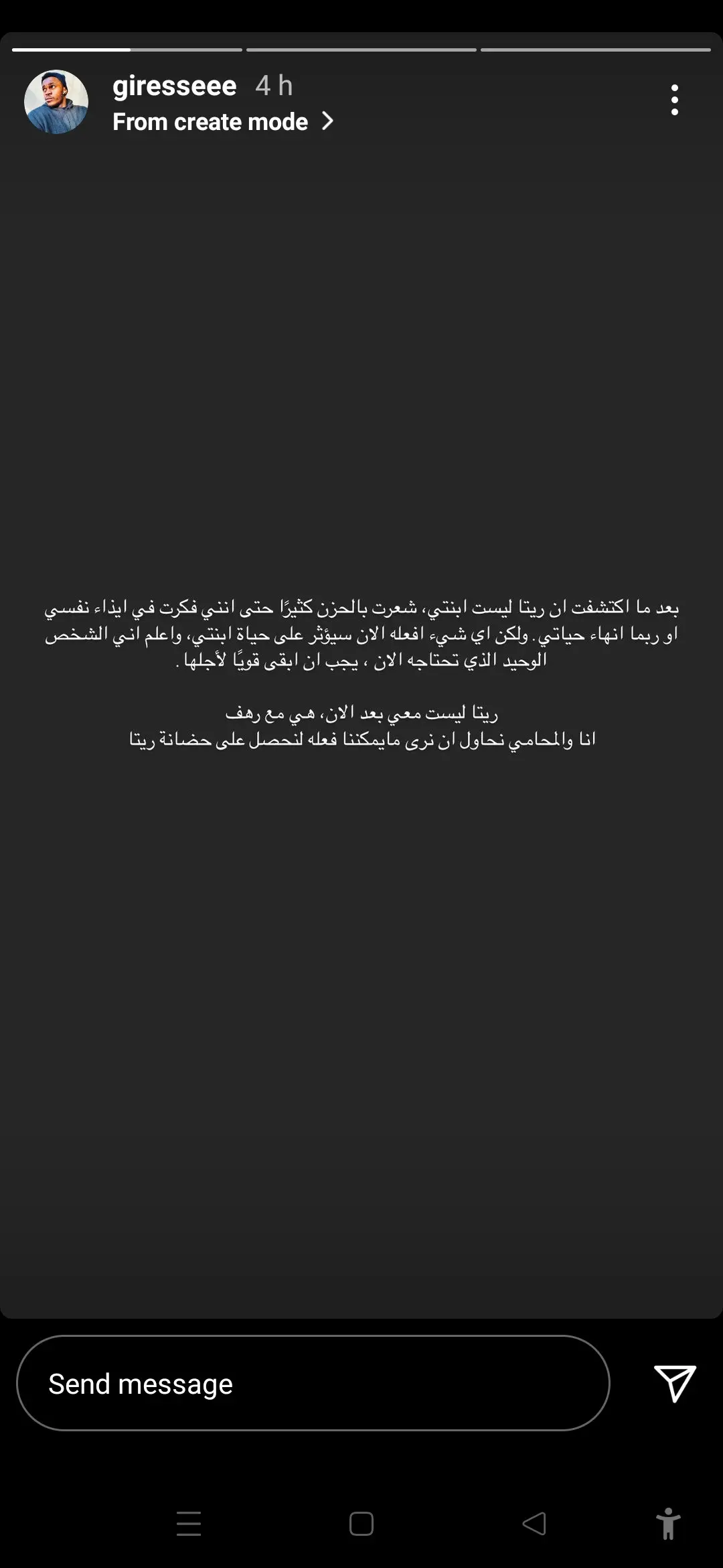 وشدد على أن "ريتا" ليست معه حاليا ولكنها مع والدتها "رهف"، معلنا أنه لجأ للقانون رفقة المحامي الخاص به؛ لبحث الطريقة الممكنة للحصول على حضانة ريتا.