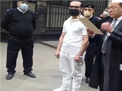 وظهر خلف، وهو مكبل اليدين مرتديا ملابس السجن البيضاء، ويحمل بيده "مسبحة"، وتم إيداعه بقفص الاتهام، بحضور محاميه وعدد من الصحفيين والإعلاميين، بحسب تقارير وسائل إعلام مصرية.