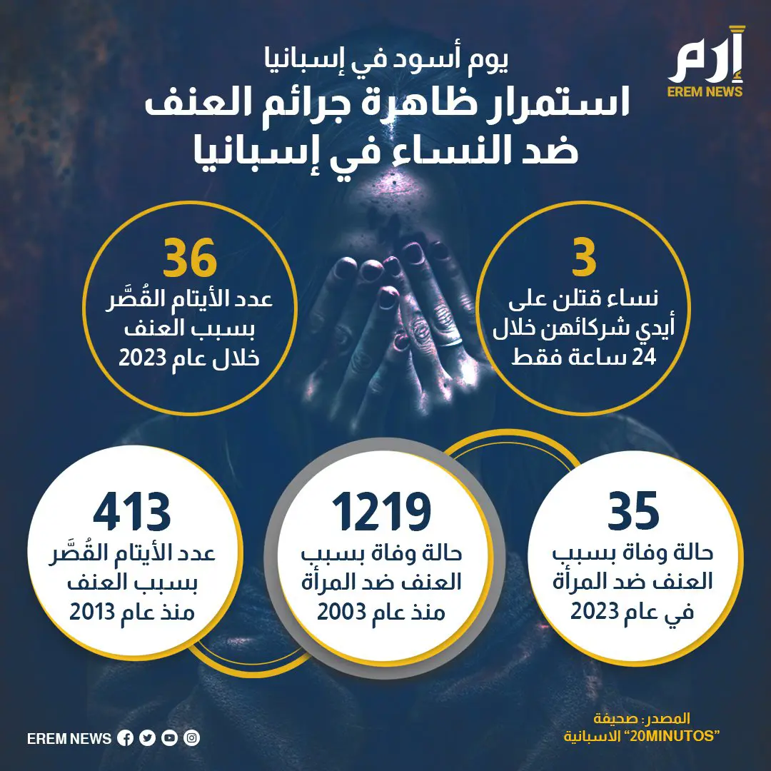 وذكرت صحيفة "20Minutos" الإسبانية، أنه "في حال تأكيد السلطات المختصة أن الجرائم الثلاث تُصنف ضمن جرائم العنف الجنسي، سيرفع ذلك عدد الوفيات بسبب العنف ضد المرأة إلى 35 حالة في عام 2023، وما مجموعه 1219 حالة منذ عام 2003".