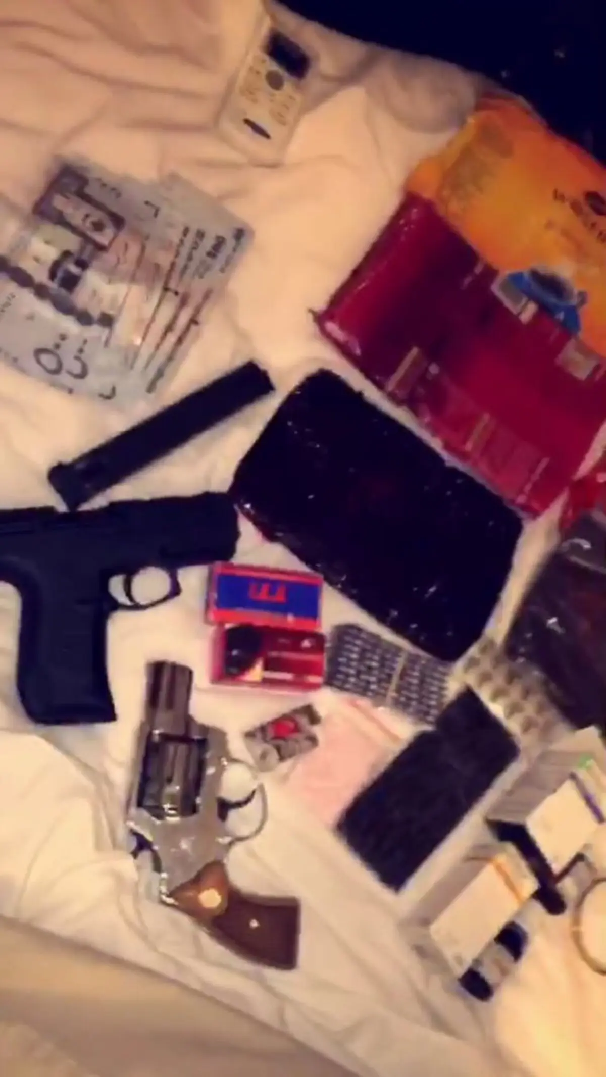 واستعرضت المديرية العامة لمكافحة المخدرات عبر حسابها في تويتر كمية من الحشيش والخمور والأسلحة والذخائر التي ضبطتها الفرق مع المروج(دوودي) ورفيقيه الذين استخدموا برنامج السناب لإيقاع ضحاياهم.