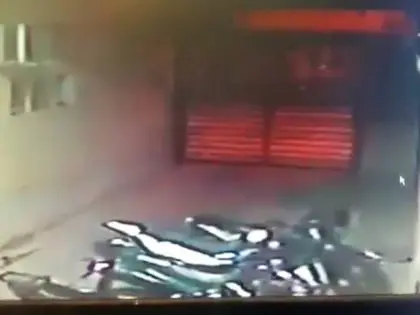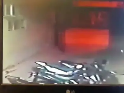 ويظهر في الفيديو باب عريض يتأرجح كأن أحدا يحركه داخل المبنى ومن ثم يصده للخارج.