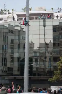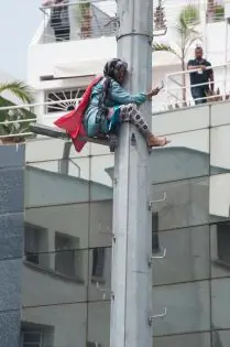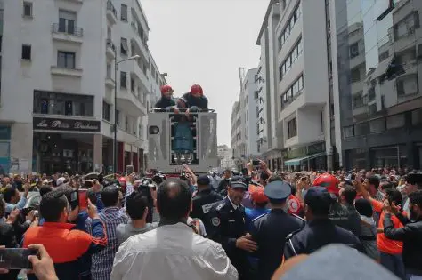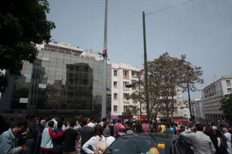 وتجمهر مئات من المواطنين تحت اللاقط الهوائي، لمحاولة ثني السيدة عن الانتحار، بينما بقيت متسلقة الهوائي لمدة طويلة، وهددت بإحراق جسدها وهي تحمل العلم المغربي.