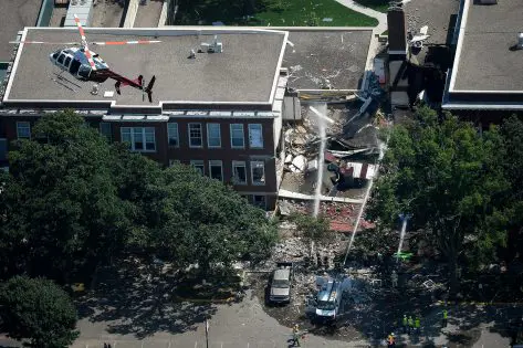 قتل شخص على الأقل وأصيب 9 آخرون بعد انفجار غازي تسبب في انهيار مبنى بمدرسة مسيحية خاصة في "منيابوليس" اليوم الأربعاء.