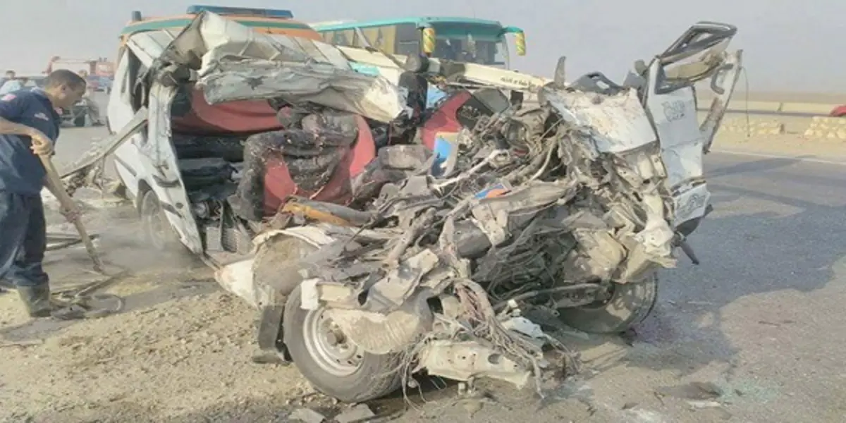 وبعدما اختل إطار "الميكروباص" بين يدي السائق، اصطدم بسيارة نقل على الطريق الصحراوي الشرقي بمحافظة بني سويف، فتحول 15 مواطنًا إلى أشلاء في مشهد مرعب، وفق شهود عيان في تدوينات عبر مواقع التواصل الاجتماعي.