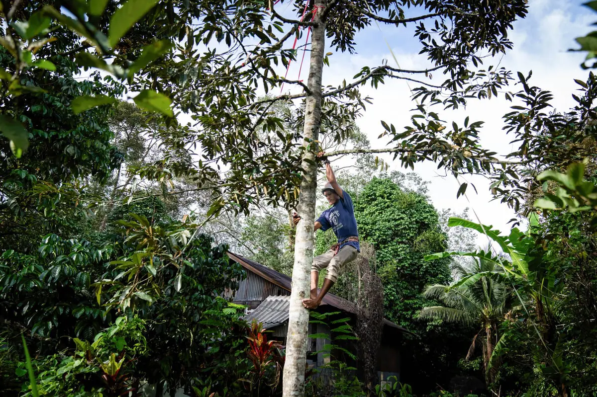 إذ يخاطر جامعو فاكهة "الدوريان"، التي تنمو في جنوب شرق آسيا، ومصدرها جزيرة سومطرة في إندونيسيا، بحياتهم خلال عملهم على التقاط ثمار تلك الفاكهة.