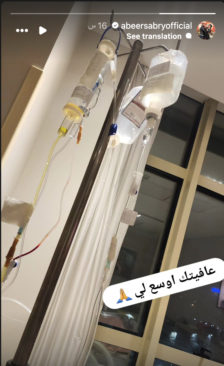 من جانبها، نشرت الفنانة عبير صبري صورة لها أثناء تلقي المحاليل الطبية داخل المستشفى عبر خاصية القصص المصورة على حسابها الشخصي على "إنستغرام"، وعلقت عليها بالقول: ولكن عافيتك هي أوسع لي".