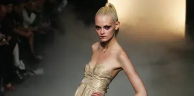 أما الصورة الثانية فتُظهر عارضة أزياء ترتدي فستانا قصيرا، بوجه "هزيل قليلا"، وعظمة ترقوة "بارزة بشكل واضح"، وساقين "نحيفتين للغاية".