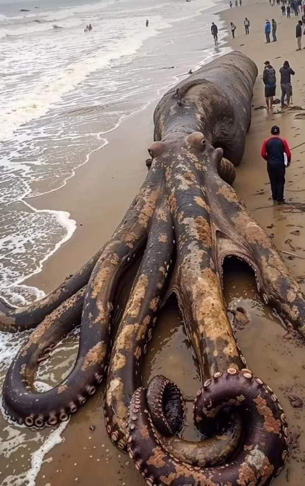 وتُظهر الصورة المتداولة أخطبوطًا عملاقًا تمتد أذرعه السبعة لعدة أمتار، ويظهر بجانبه مجموعة من الأشخاص منبهرين بشكله، ويحاولون التقاط صور له.