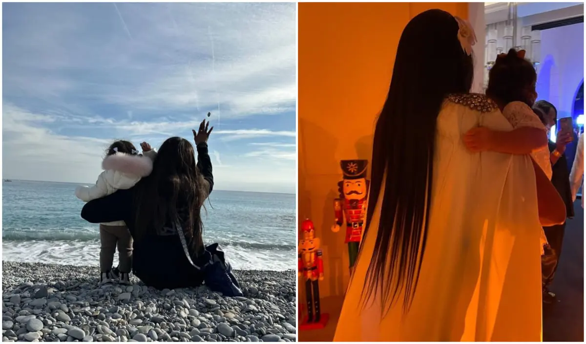 وفي إحدى الصور، ظهرت ناعومي وهي تحمل صغيرتها أثناء دخولهما إلى الحفل، وفي صورة أخرى بدت الأم وابنتها وهما أمام المحيط تلوحان بايديهما، وكأنهما تودعان عام 2022.