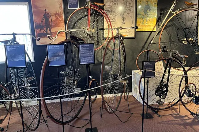 أما أحد المعالم البارزة في المتحف فهي مجموعة الدراجات ذات العجلات العالية، والمعروفة أيضًا باسم "بيني فارثينغز" التي كانت شائعة في أواخر القرن التاسع عشر؛ وهي تتميز بعجلة أمامية كبيرة وعجلة خلفية أصغر بكثير. كما توجد في الطابق الأول مجموعة واسعة من دراجات الأمان التي تم ّ تقديمها في أواخر القرن التاسع عشر، والتي سرعان ما أصبحت التصميم النموذجي للدراجات.