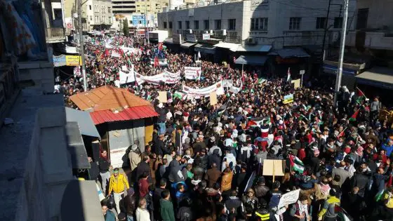 اجتاحت المدن الأردنية مسيرات شعبية غاضبة ندّدت بقرار الرئيس الأمريكي دونالد ترامب الاعتراف بالقدس عاصمة لإسرائيل ونقل السفارة الأمريكية إلى المدينة.