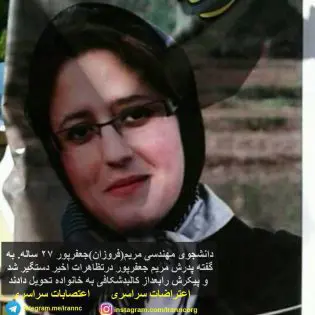 وذكر المجلس الوطني للمقاومة الإيرانية، الذي يتخذ العاصمة الفرنسية باريس مقرًا له، في بيان، أن "الطالبة في كلية الهندسة بجامعة طهران، مريم جعفر بور، 27 عامًا، توفيت في سجون النظام بعد تعرضها للتعذيب".