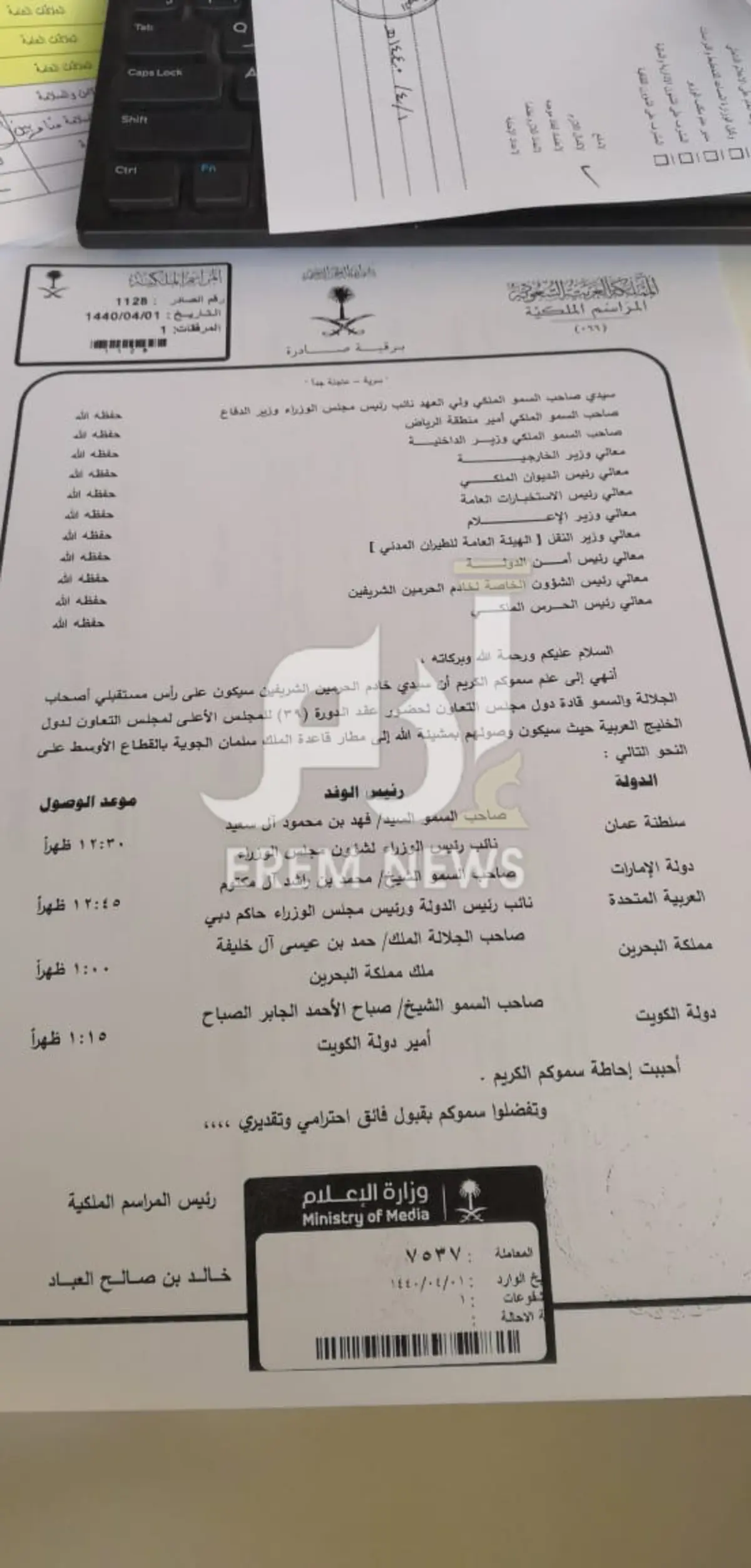 تداول مستخدمون صورة مسربة لجدول خاص بأوقات وصول رؤساء الوفود المشاركين في القمة الخليجية الـ39 المقامة في العاصمة السعودية الرياض، حيث بدت القوائم خالية من اسم قطر في موقف يعكس العزلة التي تعانيها الدوحة والموقف المقرر بتجاهلها من قبل المسؤولين في المملكة رغم الالتزام بضرورة انعقاد اجتماع مجلس التعاون.