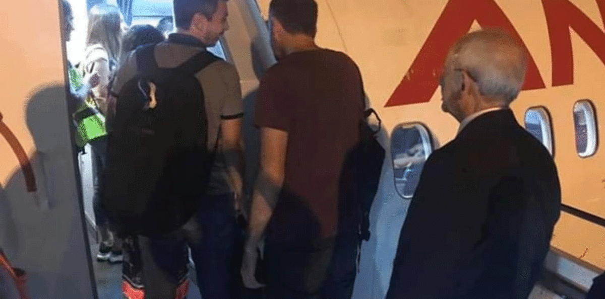 وأظهرت الصور المنتشرة كليجدار أوغلو يقف على سلم الطائرة بين الركاب ينتظر دوره للصعود إلى طائرة "أناضولو جيت" المخفضة.