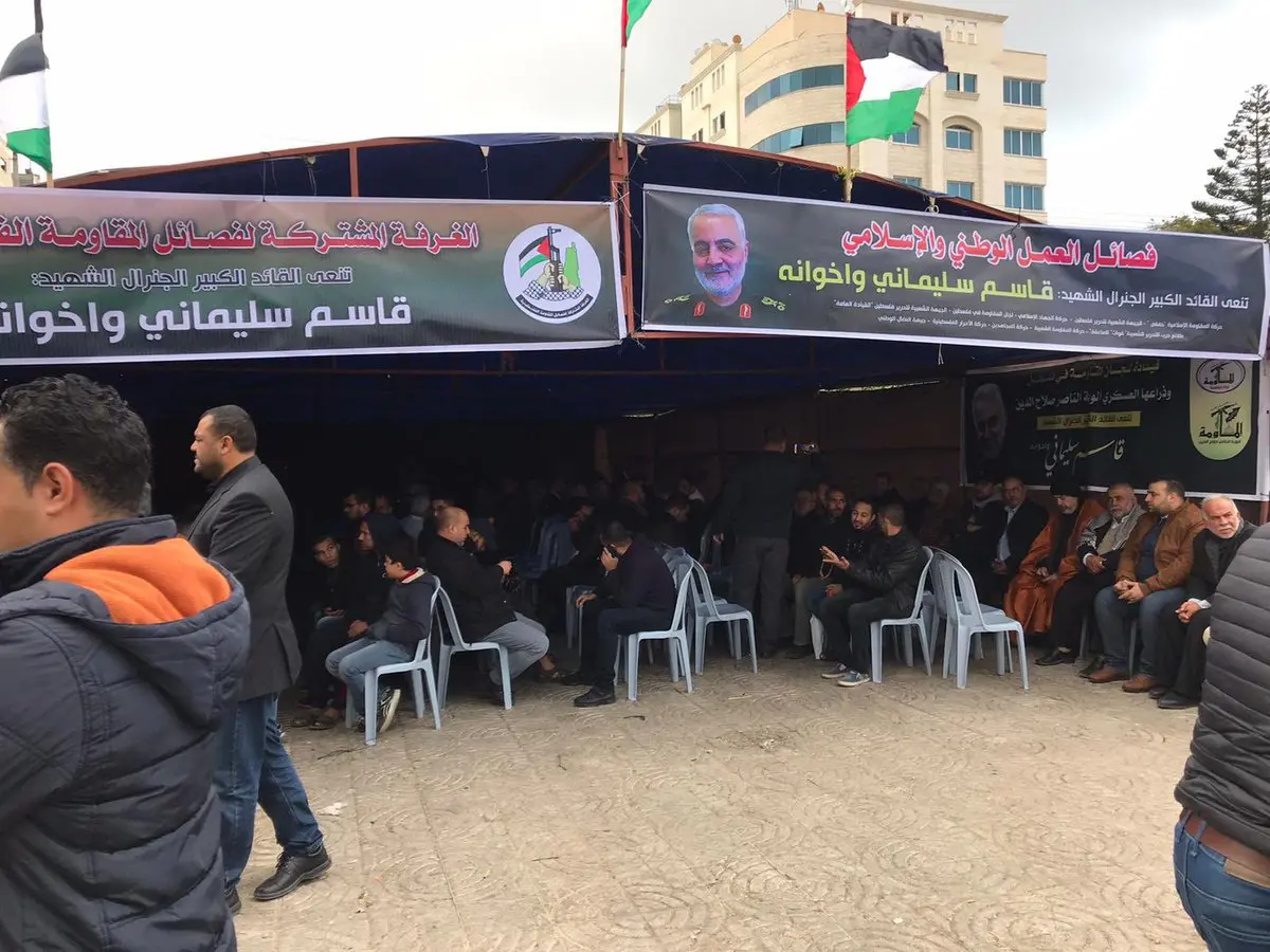وانضم قادة من حركة حماس، التي تحكم غزة، وحركة الجهاد الإسلامي، المدعومتين من إيران، إلى المعزين في سرادق أقيم لتلقي العزاء في سليماني بوسط مدينة غزة.