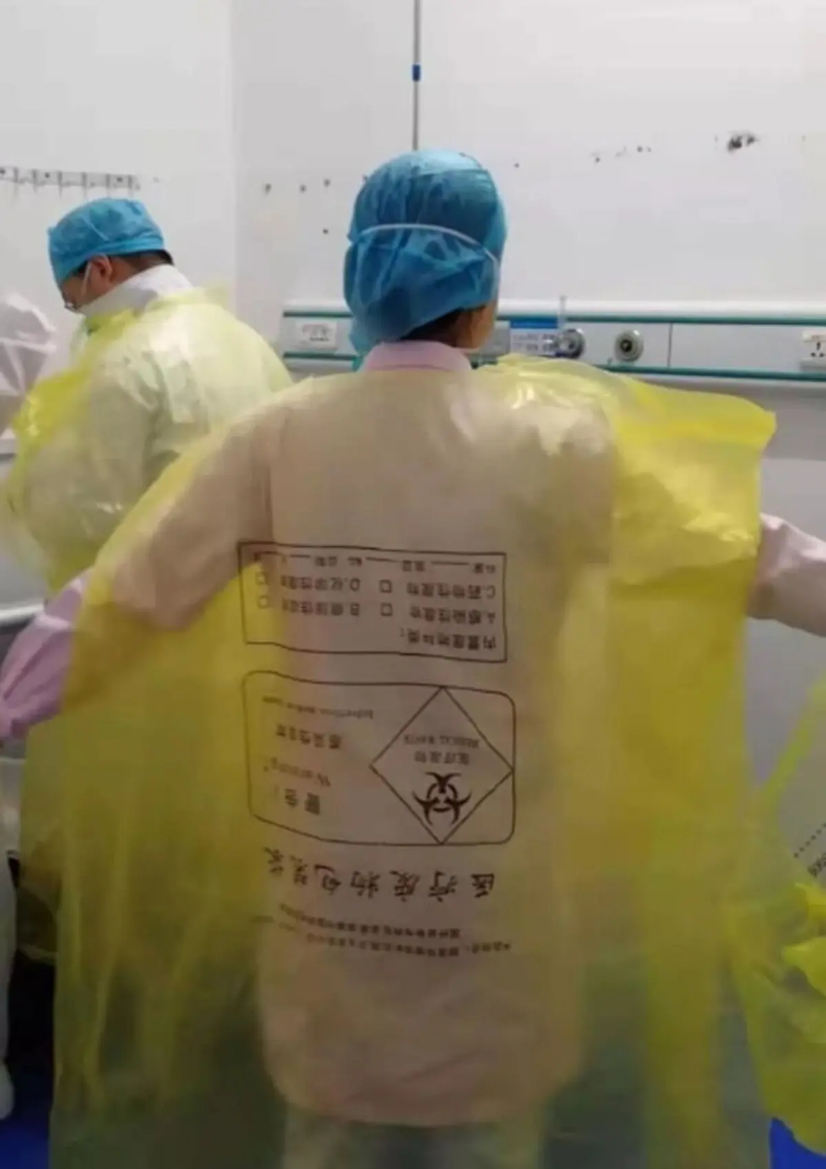 وأظهرت الصور الأطباء وهم يرتدون أكياس القمامة بدلا من البدلات الطبية الواقية.