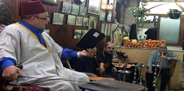 وحافظ مقهى النوفرة القديم الكائن خلف الجامع الأموي منذ قرون على فن القص، ففي إحدى الليالي قام أحمد اللحام 57 عام بقراءة قصة الملك الذي توجه لتحرير العبيد، وخبط عصا معدنية طويلة للحفاظ على انتباه زبائنه من الشرود.