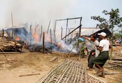 وقال خين مونج مينت (30 عاما) الذي كان متواجدا في المكان إن الحريق اندلع في مخيم باو دو فا 2 قرب سيتوي عاصمة ولاية راخين.