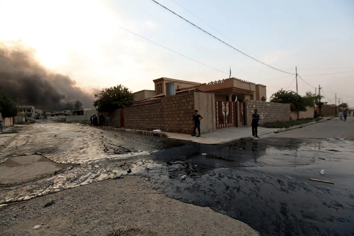 بعد أسبوع من الإعلان عن تحرير "القيارة"، جنوب مدينة الموصل، (شمالي العراق)، ما زال الدخان الأسود الذي يتصاعد من الآبار يغطي سماء الناحية.