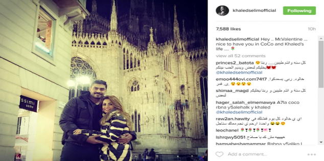 ونشر الفنان المصري خالد سليم صباح اليوم صورة تجمعه بزوجته خيرية، على حسابه الرسمي على موقع انستغرام قائلا :"شكرا يا فلانتين أنك موجود في حياتي أنا وكوكو حبيبتي".