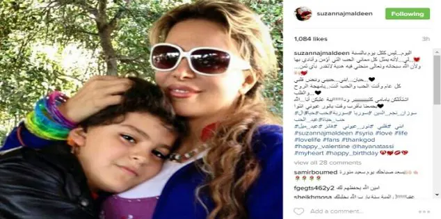 أما الفنانة السورية سوزان نجم الدين فقد اختارت أبنائها لكي توجه لهم رسالة حب قائلة :"اليوم ليس ككل يوم بالنسبة لي لأنه يمثل كل معاني الحب التي أؤمن وأنادي بها، ولأن الله سبحانه وتعالى منحني فيه هدية لاتقدر بأي ثمن.. حيان...ابني..حبيبي ونبض قلبي..كل عام وأنت الحب والحب أنت...يامهجة الروح والقلب".