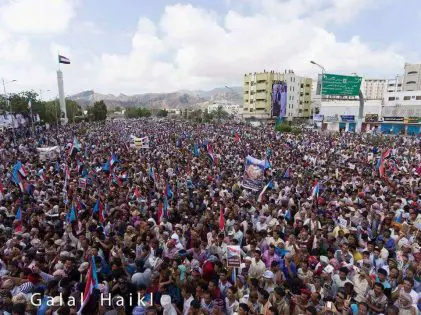 نظم جنوبيو اليمن، تظاهرة حاشدة، وصفتها تقارير إعلامية محلية بأنها "أضخم تظاهرة على الإطلاق" في مدينة عدن، العاصمة المؤقتة للبلاد.