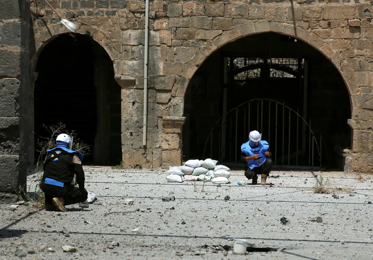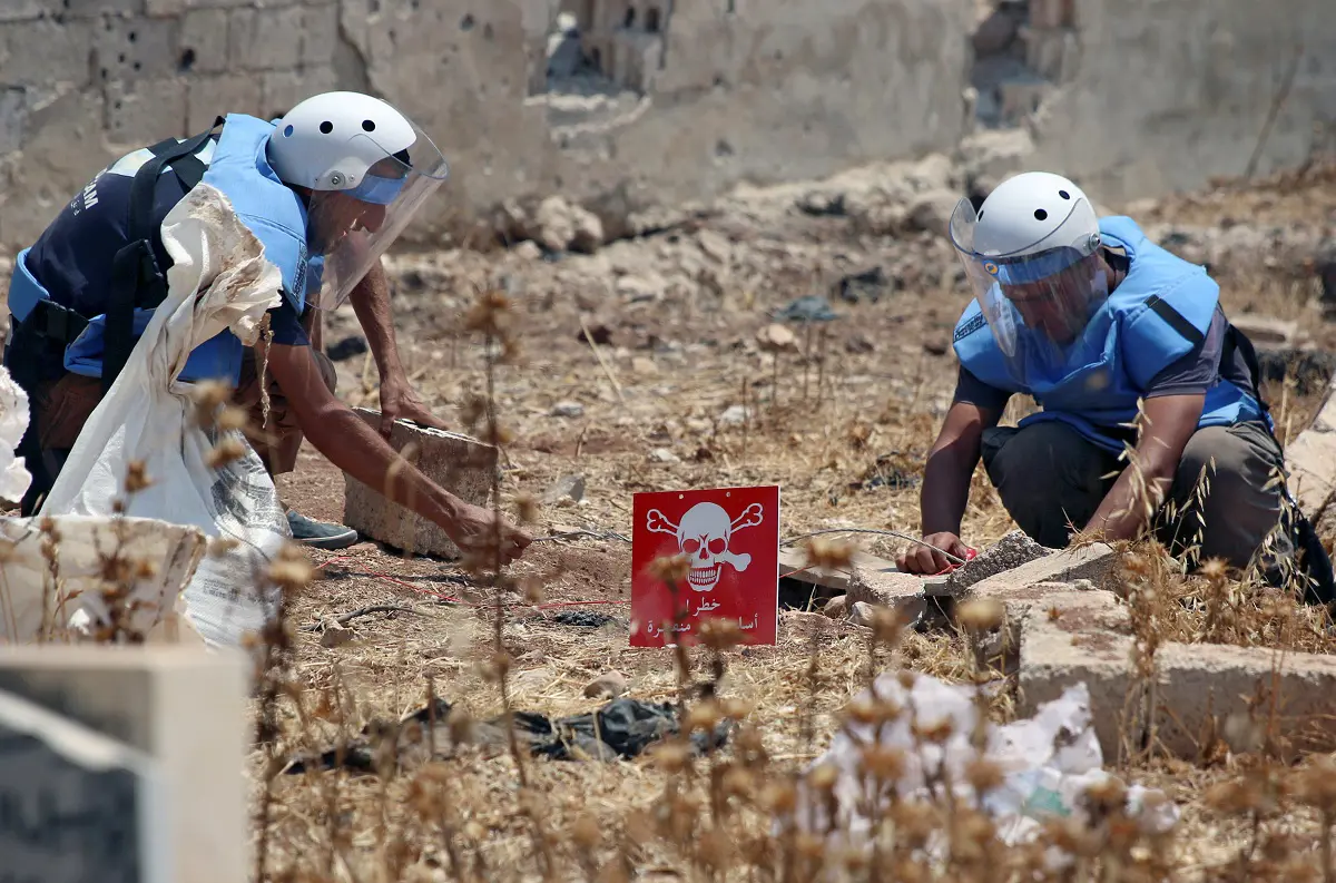 وقضى الفريق 20 يومًا في الأردن في أكتوبر/ تشرين الأول، تدرب خلالها على إزالة الألغام. وتتركز القنابل في المناطق التي شهدت أعنف قصف بما في ذلك الخطوط الأمامية وقرية حوران بجنوب غرب البلاد.