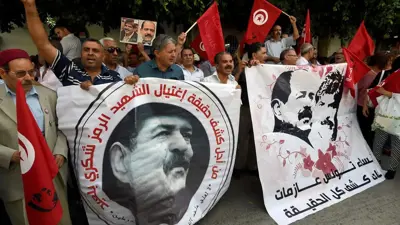 واغتيل القيادي اليساري التونسي شكري بلعيد يوم 6 فبراير / شباط 2013. وفي يوليو / تموز من السنة ذاتها اغتيل النائب بالبرلمان حينها محمد البراهمي، وتتجه أصابع الاتهام إلى حركة "النهضة" الحاكمة حينها .