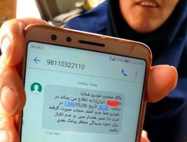 تلقى عدد من مالكي السيارات في إيران رسائل نصية من قبل قوات الشرطة تشير إلى تسجيل غرامات مالية عليهم نتيجة وجود نساء غير محجبات معهم أثناء حركتهم داخل المدن