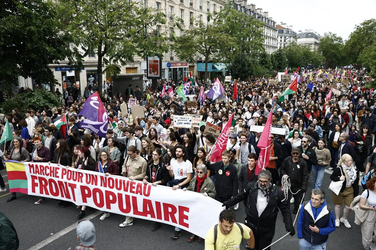 وكانت نقابات وجمعيات وأحزاب يسارية قد دعت إلى "مد شعبي" لدرء فوز جديد يتوقع أن يحققه حزب التجمع الوطني (يمين متطرف) في جولتي الانتخابات التشريعية المقررتين في 30 حزيران/يونيو و7 تموز/يوليو بعد تفوقه الأحد في الاستحقاق البرلماني للاتحاد الأوروبي في تطور دفع الرئيس الفرنسي إيمانويل ماكرون إلى حل الجمعية الوطنية.
