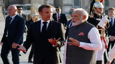 وقال مودي في بيان على وسائل التواصل الاجتماعي مخاطبًا "صديقه العزيز" ماكرون الذي بدأ زيارته مع زوجته بريجيت في العاصمة المالية للهند، إنه يتطلع إلى "الارتقاء بعلاقاتنا الثنائية إلى آفاق جديدة".
