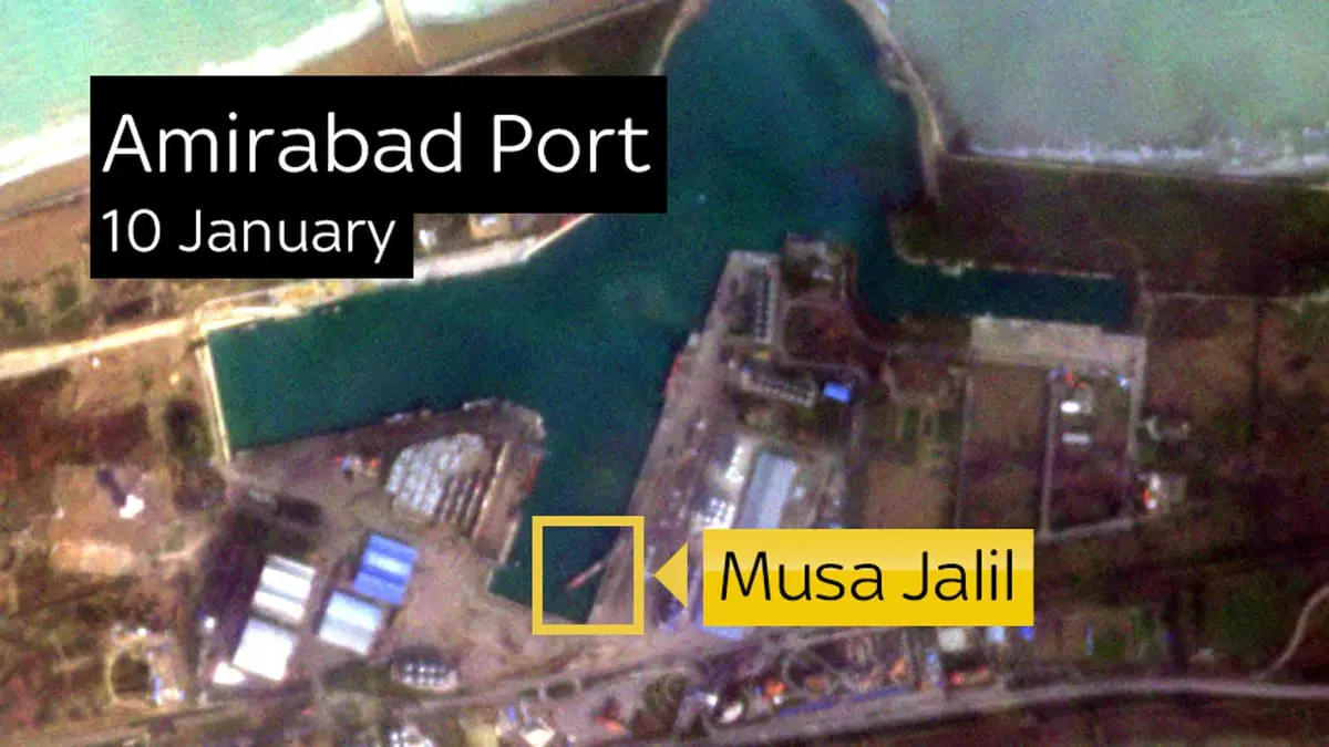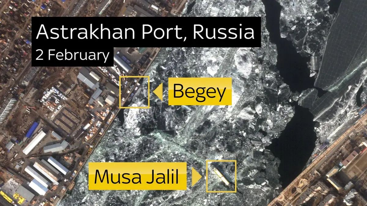 وأشارت بيانات شركة تعقب الشحن البحري "مارين ترافيك" إلى أن السفينتين كانتا في ميناء "أمير أباد" الإيراني المطل على بحر قزوين في 9 يناير، كما تظهر صور الأقمار الصناعية من اليوم التالي أن واحدة على الأقل من السفن كانت لا تزال في الميناء.