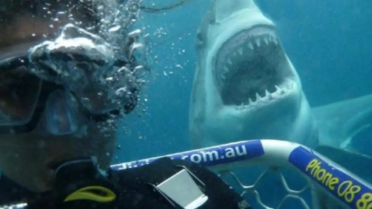 تظهر هذه المقاطع بعض صانعي الإجازات وهم يلتقطون صوراً للحظات لا تنسى لسياح يسبحون مبتسمين للكاميرا ومن خلفهم أسماك القرش الأبيض الرهيبة التي يبلغ طولها حوالي 15 قدما وتزن حوالي نصف طن.