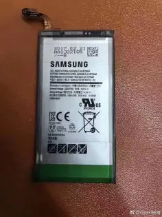 وخرجت للنور صورة توضح بطارية الجهاز وعليها تفاصيل واضحة تعكس رقم موديل البطارية " EB-BG955ABA"، ويتضمن عادة رقم الموديل مثلما ظهر في تسريبات سابقة وهو " SM-G955".