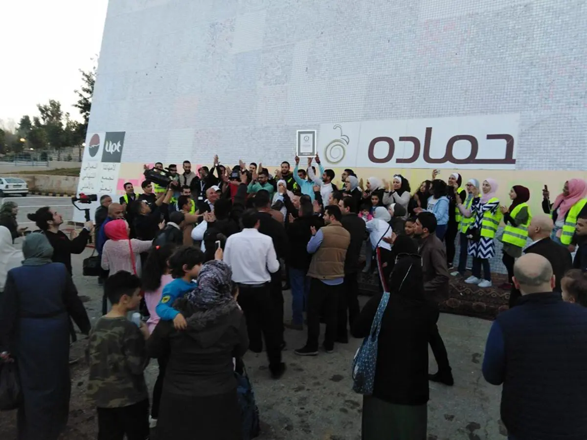وحضر المئات إلى الحدائق، برعاية من أمانة عمّان الكبرى، ودقق اللوحة الكبيرة الخبير المختص محمد أبو حجلة، ومعه عدد من محكمي موسوعة غينيس الدوليين.